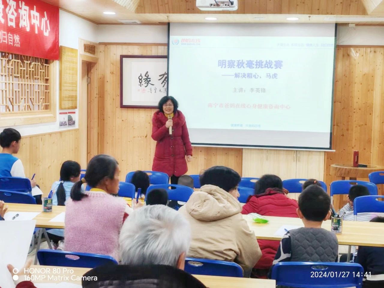 1月24日,臨邑縣爸媽在線惠芯心理咨詢工作室在師范附小洛源校區成功舉辦了一場家庭教育系列課程,由中心講師李紅霞老師為700余名家長深入解析了家庭教育的五大核心理念。