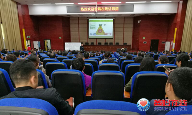 4月21日上午9點至11點30,湖南慈利縣第四中學校園公益活動正式開幕,唐副校長致歡迎詞,歡迎爸媽在線胡煜導師一行來學校進行校園公益報告,爸媽在線黨委副書記、心靈大學副校長楊萍女士代表爸媽在線發言,向現場教師、家長介紹爸媽在線校園公益事業的開展。爸媽在線創始人、董事局主席胡煜在慈利縣第四中學為300多名教師和家長進行了主題為《教師、家長健康和子女成才之道》的公益講座。